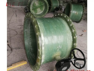 玻璃钢蝶阀把主要易腐蚀部件如阀体、阀板等设计为玻璃钢材料,玻璃钢部件所使用的纤维、纤维织物与树脂类型由蝶阀的工作条件确定。玻璃钢阀体的主体形状为直管状,它的结构特点是以一段玻璃钢直管为基础,然后再增加法兰、密封环制造而成。该种蝶阀具有耐腐蚀能力强、成本低廉、制造工艺简单灵活等特点。